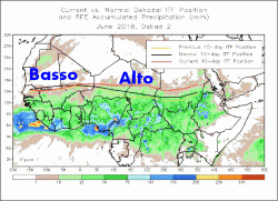 Questa ipotetica linea, chiamata anche equatore climatico, fluttua a nord e a sud a seconda delle stagioni. In estate, tra luglio e settembre, tende ad estroflettersi verso nord di circa 18°/19° sopra l’equatore, in risposta al maggiore o minore vigore della circolazione monsonica delle latitudini tropicali.