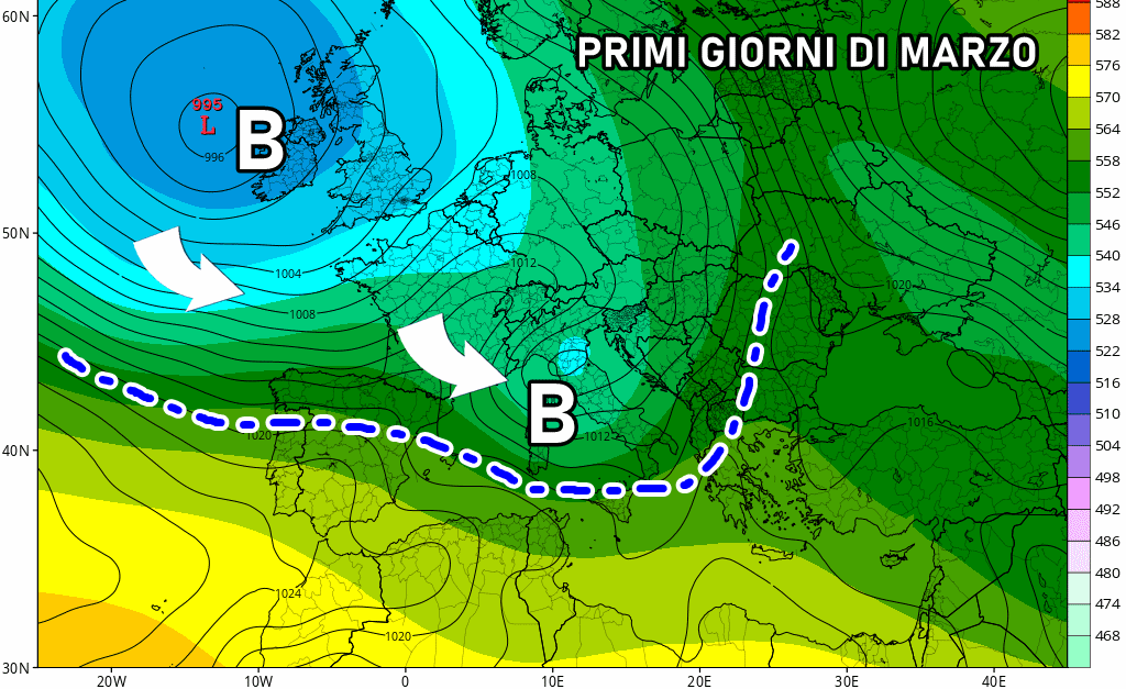 Sia tra 2 e 3 marzo, che tra 4 e 6 (insomma per tutta la prima settimana di marzo), ci aspettiamo tante occasioni di pioggia, con accumuli decisamente abbondanti su alcuni settori, meno su altri.
