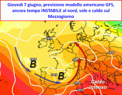 Spostando lo sguardo a medio ed a lungo termine, a seguito del passaggio dell’impulso perturbato atteso domani al nord, vi sarebbe poi una tregua su tutto il territorio ma persisterebbe una circolazione di bassa pressione sull’Iberia. Un nuovo impulso d’instabilità tornerebbe ad interessare il nord ed una parte del centro venerdì 8 e sabato 9 giugno con l’ennesima accentuazione dell’attività temporalesca.