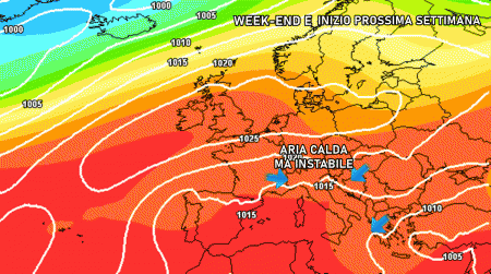 La presenza delle alte temperature anche al nord (anche oltre 33-35°C) sarà determinante per la formazione di temporali molto intensi con grandinate e forti raffiche di vento.
