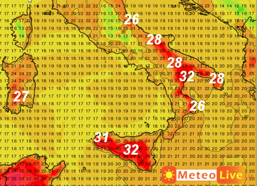 Queste invece sono le temperature attese sempre sul centro-sud del nostro Paese, nella giornata di venerdi 17 maggio.