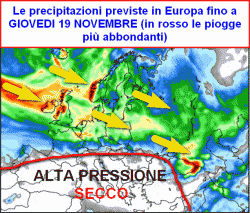 Lo spaccato delle precipitazioni previste in Europa fino a giovedì 19 novembre ci mostra una disposizione precipitativa alquanto curiosa.