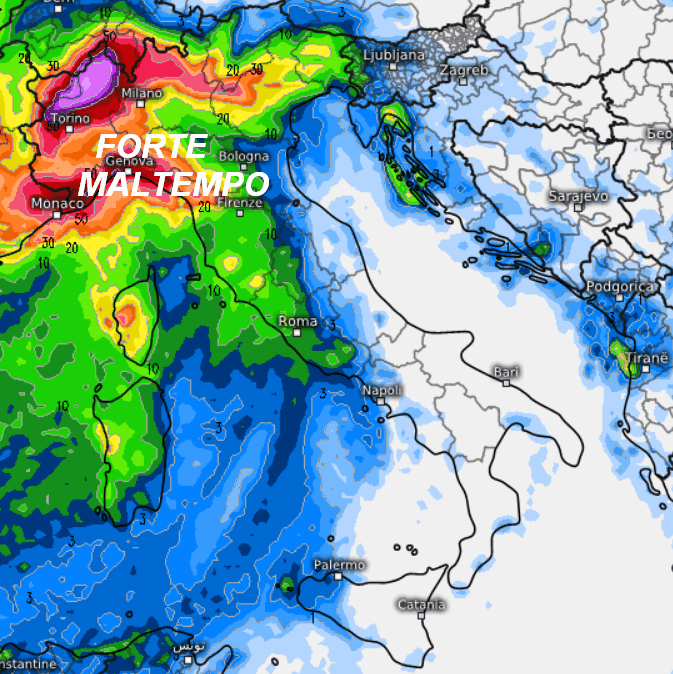 Massima attenzione al nord-ovest. Forti piogge sulla Liguria centro-occidentale con possibili dissesti idrogeologici. Neve molto abbondante tra l’alto Piemonte e la Val d’Aosta con accumuli molto alti oltre i 1200-1400 metri. Rovesci in estensione in giornata anche al nord-est, al medio versante tirrenico ed alla Sardegna. Sul resto d’Italia avremo invece una pausa, con clima mite. Attenzione ai forti venti di Scirocco ed ai mari in cattive condizioni, specie i bacini di ponente.