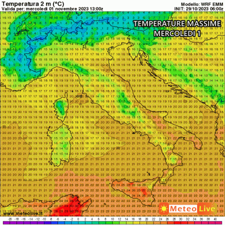 Questo lieve peggioramento, innescato da un piccolo cavo d’onda proveniente da ovest, sarà di breve durata e si sposterà rapidamente verso i Balcani, lasciando dietro di sé un temporane miglioramento delle condizioni meteorologiche. Le temperature, nel frattempo, non subiranno grandi variazioni; si prevede al massimo un leggero calo su tutta Italia, ma con valori massimi che supereranno i 20 °C in molte località del Centro e del Sud.