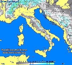 Gli accumuli di neve potrebbero rivelarsi davvero significativi: si ipotizzano anche oltre 40-50 cm di neve fresca oltre gli 800-900 metri in Appennino. Abruzzo e Molise sono al momento le regioni che maggiormente potrebbero essere colpite dalle forti nevicate.