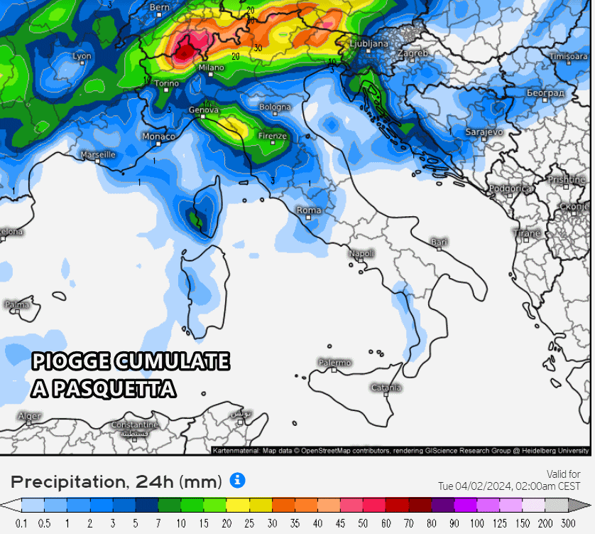 Potrebbe essere una Pasquetta bagnata soprattutto per le regioni del nord, dove affluiranno correnti più umide da sud sud-ovest, le quali porteranno nubi e precipitazioni, anche forti temporali, specie a ridosso dei monti. Secondo gli ultimi aggiornamenti di calcolo, sembra che la giornata di Pasquetta possa rivelarsi molto piovosa su Alto Piemonte, Valle d’Aosta, Lombardia, Trentino Alto Adige, Friuli e Liguria. Piogge possibili anche in Veneto, Toscana e fenomeni disorganizzati su Emilia Romagna e Marche.