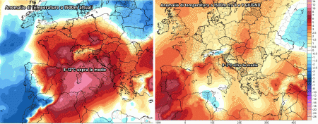 In questo confronto è chiaro ed evidente come caleranno le temperature nel corso della prossima settimana. Quantomeno ci riavvicineremo alle medie del periodo:
