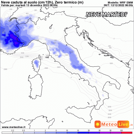 Le nevicate più interessanti riguarderanno le Alpi occidentali, specie i settori di confine, dove si prevedono oltre 20 cm di neve. Nevicate molto più deboli sul versante italiano, comprese le pianure dove assisteremo a fioccate coreografiche con bassa possibilità di accumulo.