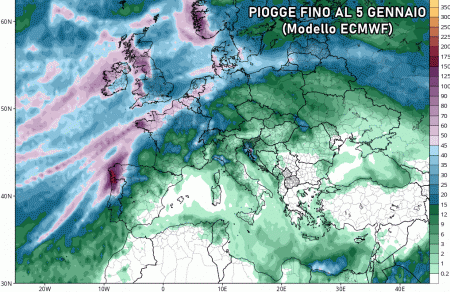 L’anticiclone africano comincerà a perdere colpi tra 2 e 3 gennaio, momento in cui le prime piogge invaderanno il nordovest. A seguire, tra 3 e 4 gennaio, le piogge si estenderanno anche al lato tirrenico centro-meridionale e in modo più sporadico potranno anche raggiungere i settori adriatici. Il 5 gennaio le ultime piogge interesseranno il sud, mentre altrove avremo un graduale miglioramento.