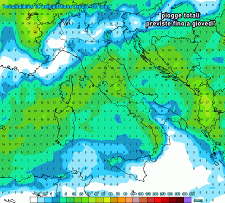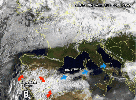 La depressione iberica raggiungerà la Sardegna mercoledì mattina, dopodichè il maltempo si estenderà rapidamente a Toscana, Lazio, Umbria, Marche, Abruzzo, Molise e Campania.