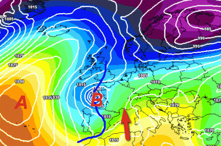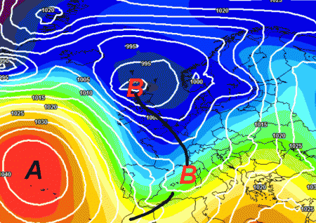 Spostamento dell’anticiclone in Atlantico e saccatura in azione sull’Europa occidentale: una ghiotta occasione per fare preziosi millimetri di pioggia (e centimetri di neve sulle Alpi) sulle regioni settentrionali, soprattutto al nord-ovest.