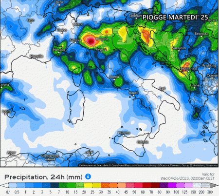 MARTEDì 25 – Festa della Liberazione con ombrelli a portata di mano su Lombardia, Liguria, basso Piemonte, Emilia Romagna, Veneto, Friuli, Toscana, Marche, Umbria, Lazio. Insomma gran parte del centro-nord vedrà condizioni di maltempo. Nubi in aumento al sud con fenomeni rari. Cominciano a scendere vistosamente le temperature a partire dal nord.