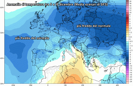 Per osservare effetti più marcati di queste retrogressioni fredde dall’est, bisognerà attendere la prima settimana di dicembre. Ovviamente ad ora è impossibile quale strada prenderà l’aria molto fredda, pertanto sarà necessario attendere ancora alcuni giorni per definire con più chiarezza il quadro barico generale.