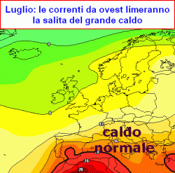 Le previsioni per luglio ed agosto indicano la possibilità di disturbi soprattutto al nord, con scarsa capacità penetrativa dell'anticiclone africano sul bacino del Mediterraneo, a causa della costante limatura imposta dalle correnti occidentali.