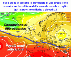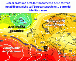 Da questo punto di partenza la circolazione atmosferica relativa ai prossimi giorni subirà ancora una trasformazione sostanziale: la mancanza di una figura anticiclonica realmente tenace, in grado quindi di creare un muro nei confronti delle masse d’aria fresche, renderà assai meno difficoltosa la penetrazione delle correnti instabili oeaniche, le quali torneranno ad influenzare il tempo sul nostro continente dopo un lungo periodo di assenza.
