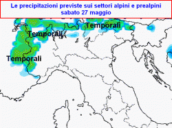 Un discorso a parte meritano invece le condizioni atmosferiche previste sui rilievi montuosi, laddove l’azione dell’orografia, consentirà la risalita di vere e proprie "bolle" d’aria caldo umida che, sfruttando i pendii montuosi come veri e propri trampolini di lancio, potranno raggiungere quote assai elevate. Queste "bolle" d’aria calda giungeranno quindi in una condizione di sovrassaturazione la cui conseguenza porterà alla formazione di nubi a sviluppo verticale associate a rovesci e temporali.