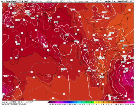 L’anticiclone africano dovrebbe persistere, stando alle ultime elaborazioni, anche nel corso della settimana prossima, portando sole e caldo in ulteriore intensificazione su tutta la penisola, con temperature nettamente al di sopra delle medie.