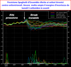 termine della prima decade settembrina, la maggior parte dei clusters tende invece ad allinearsi verso una condizione di instabilità in vista per il Mediterraneo da domenica 4 settembre in avanti.