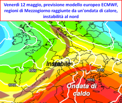 e giovedì 11 maggio, ecco profilarsi quel famigerato cambio di circolazione che vedrà l’entrata in scena di una saccatura sull’ovest Europa ed un letto di correnti meridionali pronte ad interessare il bacino centrale del Mediterraneo.