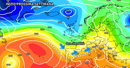 L’apice dell’instabilità arriverà tra lunedì e martedì quando il flusso instabile atlantico si farà più intenso e produrrà temporali estesi e forti su Valle d’Aosta, Piemonte, Lombardia, Emilia, Veneto, Trentino Alto Adige. Rischio temporali di forte entità, con grandine e colpi di vento, piuttosto marcato.