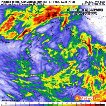 Eloquenti le piogge previste sull’Italia entro lunedì 7: