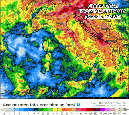 Il centro di calcolo americano GFS è il più generoso in termini di piogge. Gli accumuli totali fino al termine della prossima settimana, ovvero fino al 14 Maggio, sono davvero clamorosi. Su gran parte del nord si evincono accumuli di pioggia totali superiori ai 130-150 mm, specie su Lombardia, Piemonte occidentale, Trentino Alto Adige. Nel "peggiore dei casi" troviamo accumuli attorno ai 50-70 mm. Insomma uno scenario del genere permetterebbe l’arrivo davvero di tanta pioggia, ma considerando che ci saranno anche temporali non dovremo sottovalutare il rischio di improvvisi nubifragi e anche grandinate.