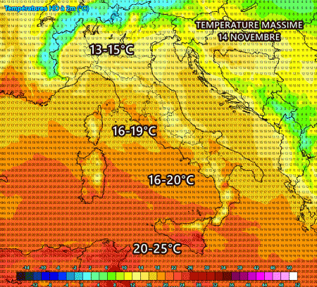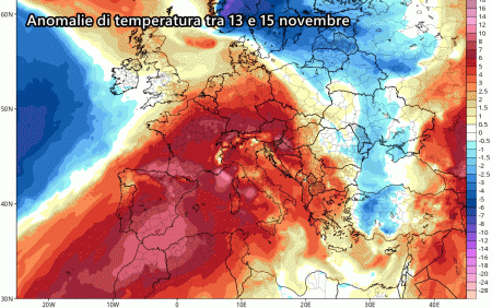 Come molti di voi avranno intuito, ci aspetta un nuovo aumento delle temperature, particolarmente significativo al Sud e sulle isole maggiori, dove si prevede che i termometri possano di nuovo raggiungere i 20-22 °C, con picchi isolati di 25 °C, in particolare in Sicilia. Al Nord, le condizioni saranno leggermente più fresche: infatti, le temperature massime attorno al 14 e 15 novembre non dovrebbero eccedere i 14-15 °C. Al contrario, si attendono temperature minime decisamente più basse, che potrebbero avvicinarsi allo zero nelle valli alpine e appenniniche.