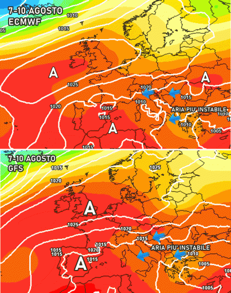 Il momento di massima instabilità potrebbe giungere tra lunedì 8 e mercoledì 10 grazie a infiltrazioni decisamente instabili dai Balcani su tutta Italia. In tal caso potremmo assistere a decine e decine di temporali isolati ma potenti, concentrati perlopiù nelle ore più calde della giornata e durante la sera.