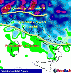 In alcune zone, rovesci e temporali saranno abbastanza frequenti e potrebbero determinare accumuli di tutto rispetto, in un periodo solitamente contrassegnato da fenomeni piuttosto scarsi.