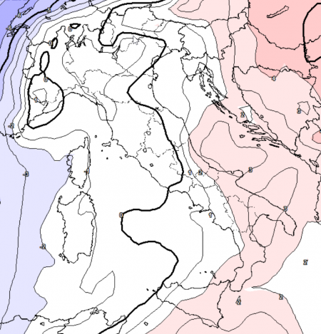 Notiamo che lo scenario ufficiale del modello nostrano promette maltempo e anche piuttosto freddo specie al nord; questo scenario viene pienamente condiviso anche dalla media di tutti gli scenari del modello medesimo. Questo significa che la previsione in questione gode già di buona attendibilità, nonostante la scadenza previsionale sia ancora lontana.