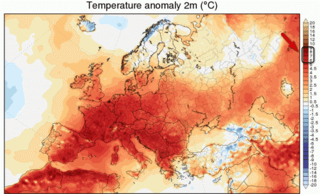 Il resto d’Europa, compresa ovviamente l’Italia, sarà un immenso calderone bollente con anomalie al rialzo tra 6 e 9° (si veda la scala a lato sulla destra). Sui tratta di anomalie termiche da capogiro che potrebbero ovviamente avere ripercussioni anche sulla seguente stagione invernale; ci auguriamo ovviamente che non sia così e che la situazione torni alla normalità al più presto.
