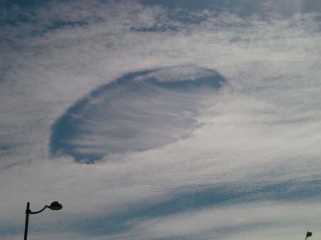 Le stranezze del cielo spesso si rivelano agli attenti osservatori con manifestazioni assolutamente "inedite". E’ il caso di questo buco nel tessuto nuvoloso che è stato immortalato il 29 agosto 2010 dal nostro lettore Giampiero Chierici sui cieli del Mantovano.