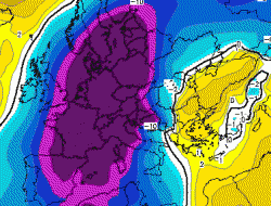 Il freddo si assottiglia e si torna gradualmente con i piedi per terra, ma la vista del viola sulle mappe del tempo riuscirà sempre a stupire il freddofilo, a far trascorrere notti in bianco al pensiero, a quella sottile, esile, fragile speranza che quel lago gelido possa davvero vincere tutte le resistenze e presentarsi al nostro cospetto. E se non sarà così almeno avremo sognato, lode a chi ha inventato quei colori sfavillanti, nei quali puoi tuffarti ad immaginare l’evento che vorresti vivere.
