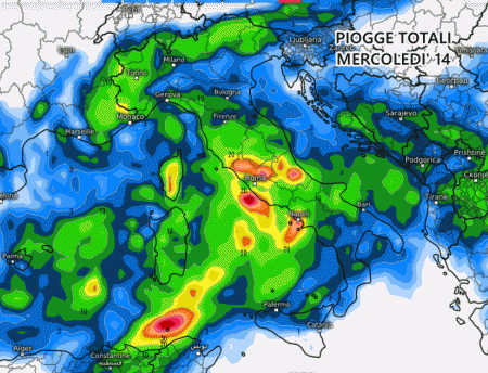 Mercoledì il maltempo entrerà nel vivo su tutto il centro ed il sud: ci aspettiamo il transito di un fronte temporalesco dapprima in Sardegna e successivamente su Sicilia occidentale, Lazio, bassa Toscana, Umbria, Abruzzo, Campania, Puglia settentrionale. su questi settori avremo accumuli di pioggia localmente sostanziosi, anche superiori ai 40 mm. Al nord avremo tempo più variabile, con maggior rischio acquazzoni su Piemonte, Liguria, Alpi e Prealpi.