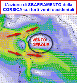Buone notizie anche dal punto di vista eolico. Potremmo dire che "la Corsica ci metterà una pezza", riparando la zona dai forti venti occidentali che sono attesi sia su Livorno, sia sulle Bocche di Bonifacio, più a sud.