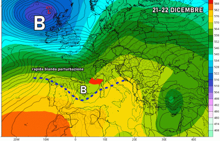 Rapido peggioramento tra 21 e 22 dicembre, dove pioverà?