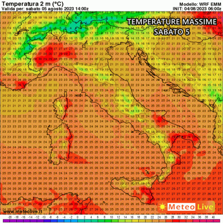 Le temperature scenderanno ovunque, anche al sud Italia già dalle prime ore di sabato. Le massime previste sono decisamente gradevoli, addirittura inferiori alle medie del periodo su gran parte d’Italia.