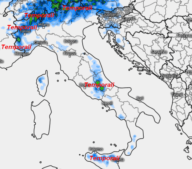 Temporali pomeridiani o serali interesseranno segnatamente la fascia alpina e prealpina, con rari sconfinamenti verso le zone di pianura prossime alla chiostra montuosa. Si tratterà di fenomeni anche intensi, di conseguenza raccomandiamo prudenza nelle escursioni in quota. Qualche piovasco o breve temporale pomeridiano sarà possibile anche nelle aree interne del centro poste tra Lazio e Abruzzo e forse nelle aree interne della Sicilia, per il resto sole dardeggiante.