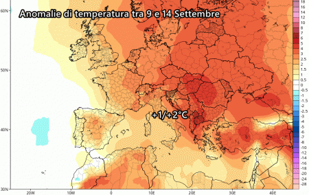 Tuttavia, secondo le ultime simulazioni modellistiche, questa ondata di caldo non dovrebbe essere intensa e persistente come quelle sperimentate negli ultimi due mesi. Infatti, tra il 9 e il 14 settembre, le temperature potrebbero tornare a valori vicini alle medie del periodo, grazie all’avanzata delle correnti più miti provenienti da ovest, ovvero dall’Atlantico.