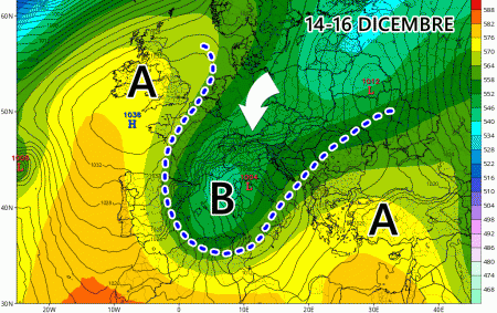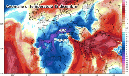 Il suo arrivo permetterebbe alla colonnina di mercurio di precipitare su tutto il nord ed il lato tirrenico, portandosi al di sotto delle medie del periodo a metà mese.