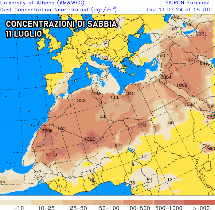 Solitamente le nubi di polvere desertica invadono l’Italia quando le depressioni atlantiche si fiondano sull’Europa occidentale sprofondando sino verso la bassa Spagna e il Marocco. Questo la prossima settimana non succederà e di conseguenza avremo correnti molto più blande che si limiteranno a trascinare verso l’Italia aria via via sempre più calda, però priva di nubi di polvere sahariana degne di nota.