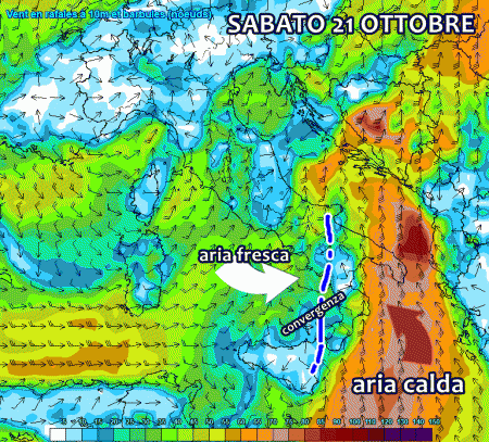 Questi temporali si svilupperanno lungo una zona di convergenza tra correnti d’aria molto diverse. Dal Mar Ionio soffieranno forti raffiche di scirocco, trasportando aria calda e umida verso il sud Italia. Dall’altra parte, avremo correnti molto più fresche che giungeranno da ovest attraverso il Mar Tirreno e raggiungeranno il meridione. Lo scontro tra queste correnti darà origine a temporali estesi e intensi che si muoveranno da ovest verso est attraversando tutto il sud Italia dalle prime ore del sabato al pomeriggio.