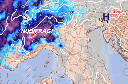La mattinata di domani, in verità, passerà tranquilla, con cieli lattiginosi per sabbia africana in sospensione e qualche rovescio solo tra Val d’Aosta, Alpi occidentali ed alto Piemonte. I “giochi” inizieranno attorno alle ore 14. Questa è la mappa delle piogge attese attorno a quest’ora: