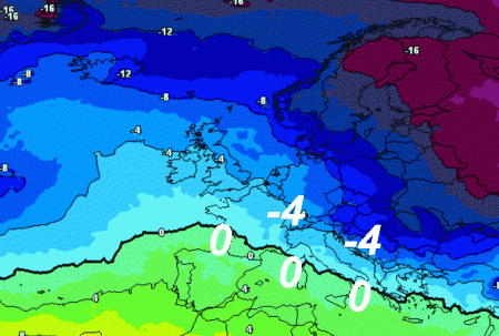 Nel dettaglio, al nord si andrebbe tra -2 e -4° a 1500 metri, con l’isoterma -2° a prolungarsi anche su gran parte del versante adriatico. Si tratta di una possibilità valutata al momento attorno al 35-40% che ovviamente riduce molto le aspettative molto fredde che erano presenti fino a ieri e da diversi giorni.
