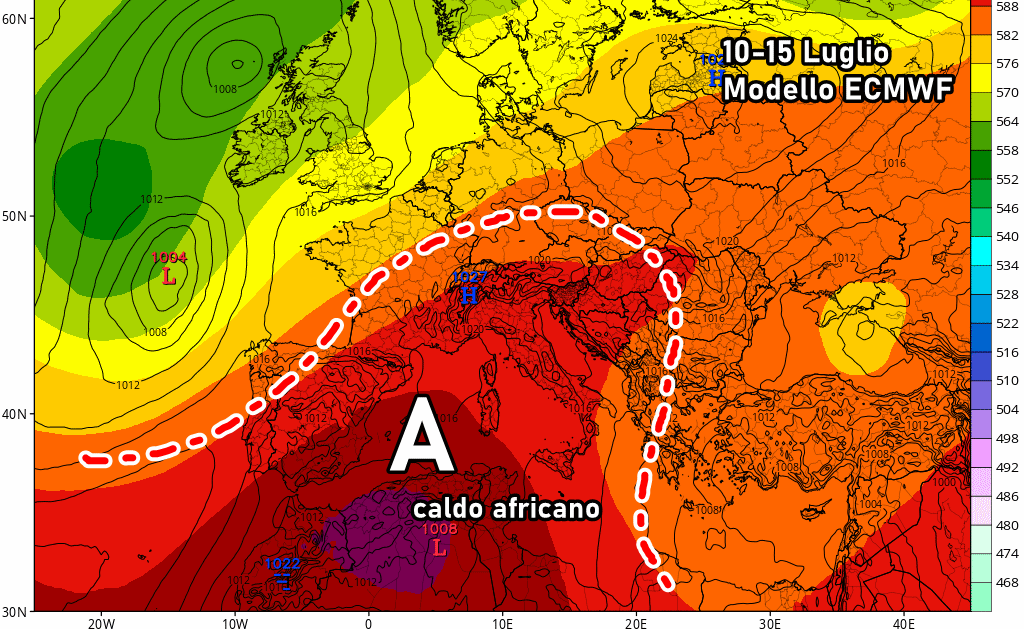 Ora questo meccanismo un po’ perverso potrebbe improvvisamente interrompersi a partire dalla prossima settimana, come si evince dagli aggiornamenti dei principali centri di calcolo. Dopo l’ennesima sfuriata temporalesca prevista per questo fine settimana, ovvero il primo weekend di luglio, segnatamente sulle regioni del Nord Italia, è molto probabile un rinforzo dell’alta pressione non solo sulle regioni del Centro-Sud ma anche sul settentrione.