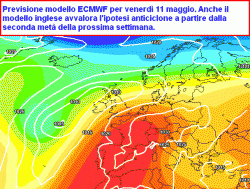 Al momento il "cuore" caldo dell’anticiclone è previsto invadere la penisola Iberica già entro la giornata di mercoledì 9 maggio. Successivamente sia il modello inglese che quello americano prevedono un’intensificazione del medesimo anticiclone entro il week end del 12-13 maggio sull’Europa occidentale, con aumento del caldo anche in territorio italiano.