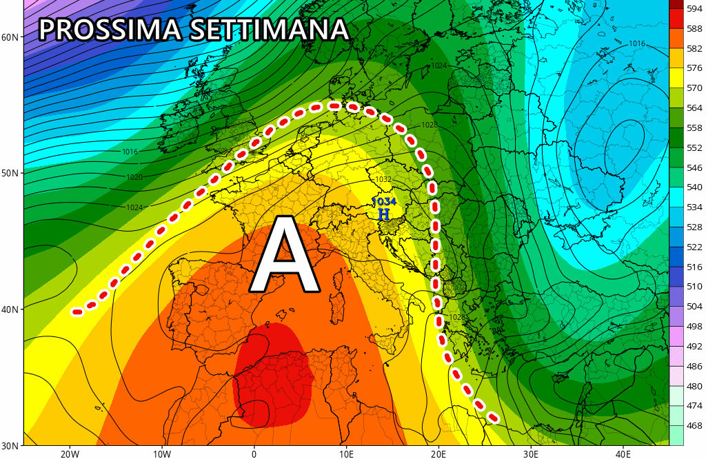Non ci sono più dubbi riguardo l’evoluzione meteo della prossima settimana. Come più volte annunciato, l’Italia e gran parte dell’Europa centro-occidentale si preparano a fare i conti nuovamente con un invadente anticiclone, alimentato da correnti sub-tropicali in alta quota. Anche in questo caso si tratterà di un anticiclone persistente e tutt’altro che mobile: frutto dell’accelerazione della corrente a getto sul nord-atlantico, tenderà a stabilizzarsi a pieno sul Mediterraneo centro-occidentale.