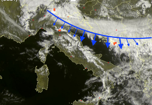 Situazione meteo in Diretta: arriva il fronte freddo, primi temporali al Nord Est
