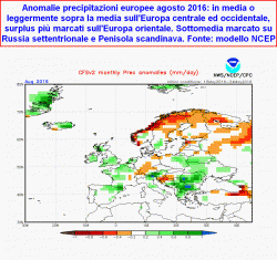 Il mese più stabile del trio potrebbe essere luglio 2016; le ondate di calura più intense sarebbero possibili anche al nord. Agosto 2016 con picchi di calura sul Mezzogiorno, mentre il tempo potrebber diventare un po’ più instabile al settentrione con precipitazioni generalmente nella norma.