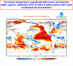 Risulta infatti conclamato l’intervento di un pesante surriscaldamento delle acque sull’oceano Pacifico, un aumento della temperatura che raggiungerà la sua massima espressione proprio lungo le coste occidentali del Sud America, laddove l’aumento del flussi di calore marini determina già adesso un surplus di calore anche nella sovrastante atmosfera.